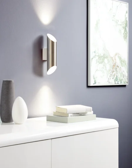 VICARO Wall Light – Chrome Finish with Satin Glass – Integrated 2.5W LED – 180 Lumens – 3000K Warm White – Compact Design (135 x 135 x 65 mm) – Ideal for Hallways, Bedrooms, and Living Rooms – 2-Year Warranty