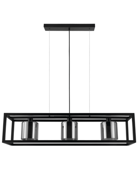 Brisling 3‑Light Linear Pendant, Black Steel Frame with Smoked Glass Shades, 110×25×110cm, E27 Sockets, 2‑Year Warranty