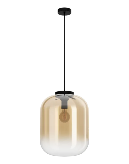 BULCIAGO 39672 Pendant Light – 1×E27 Socket (Max40W), Black Steel with Amber Vaporized Glass Shade, Ø350mm × H1500mm – IP20 Indoor – 2‑Year Warranty