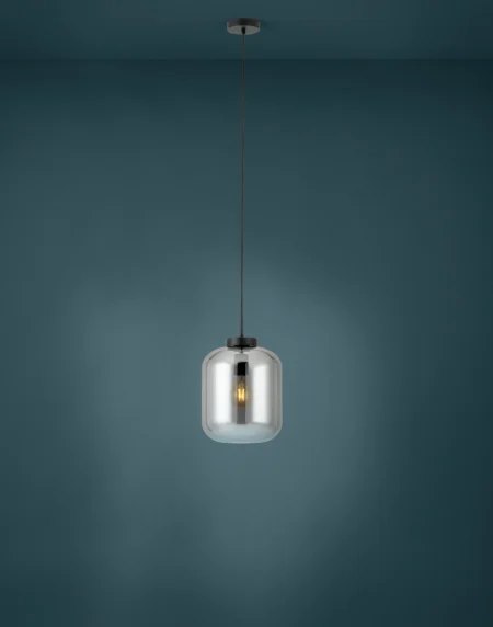 BULCIAGO39673 Pendant Light – 1×E27 Socket (Max40W), Black Steel with Black‑Transparent Vaporized Glass Shade, Ø250mm × H1500mm – IP20 Indoor – 2‑Year Warranty