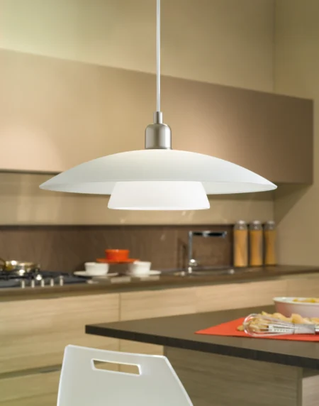BRENDA Pendant Light – Satin‑Nickel Steel with White Satin-Glass Double Shade – E27 Socket – 43″ Adjustable Cable – Modern Scandinavian Minimalist Lighting – 2‑Year Warranty