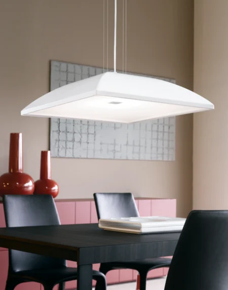 ZAGAROLE LED 24W Pendant – White Steel Frame, 47cm Ø × 110cm Drop – Integrated 2,170lm Warm‑White LED (3000K), Replaceable LEDs – Modern Ceiling Chandelier