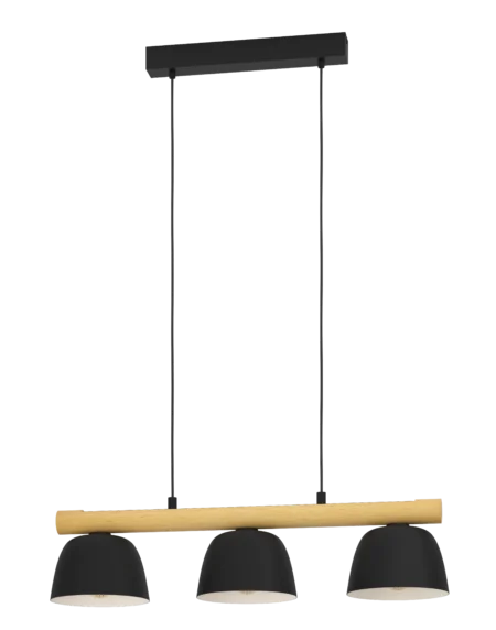 SHERBURN Pendant Light – Black Steel & Natural Wood – 3×E27 Sockets – Length800mm × Width200mm × Height1100mm – IP20 – Vintage‑Industrial Linear Design
