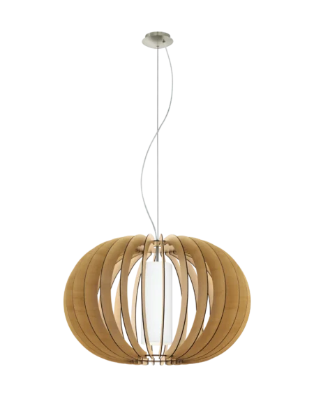 STELLATO1 95601 Pendant Light – 27.6″ Wood & White Glass Shade, Satin‑Nickel Steel, E27 Socket, 78″ Adjustable Cable, Scandinavian Modern
