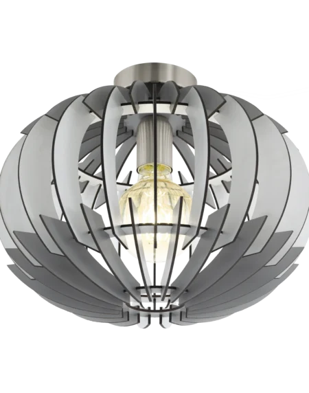 OLMERO Ceiling Light – 1×E27 Socket, Satin Nickel Finish with Grey & White Wooden Slats, 35cm Diameter, 60W Max, Ideal for Modern Living & Dining Spaces