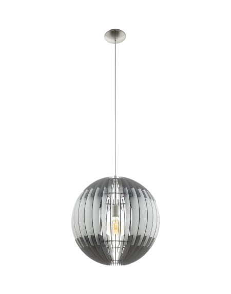 Rambla98376 Wood & Satin-Nickel Pendant – 1‑Light E27 Globe with Wood Top & Glass Shade, 110cm Height, Adjustable, Dimmable‑Ready, IP20, 2‑Year Warranty