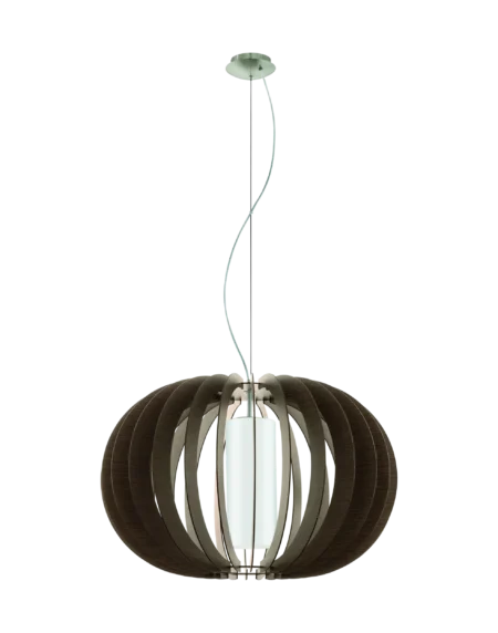Tindori 1‑Light E27 Pendant – Satin-Nickel Steel with Brown Wood Slats & White Glass Shade, Ø50cm × Adjustable 1.5m Drop, E27, 2‑Year Warranty