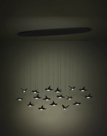 Paratebueno 17‑Light Oval LED Pendant – Black Steel with Satin Nickel Bird Shades, 1.48×0.26×2.20m Adjustable, 6460lm Warm White, 5‑Year Warranty