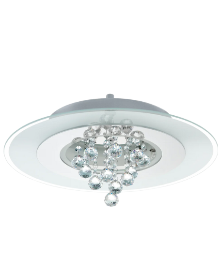 The EGLO MONTESILVANO (39334) ceiling light from the Stars of Light (Crystal & Design) collection combines modern luxury with artistic brilliance. Featuring a glittery glass shade and chrome steel structure, this statement fixture illuminates interiors with warm, inviting light. Its circular design adds elegance to contemporary spaces such as living