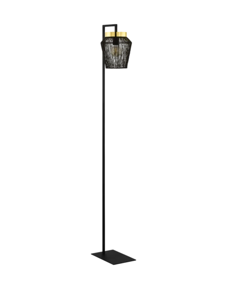 ESCANDIDOS Floor Lamp – Black & Brass Steel with Fine Wire Shade, 1,700mm H × 310×220mm Base, E27 Socket (Max40W), Foot‑Switch – 2‑Year Warranty