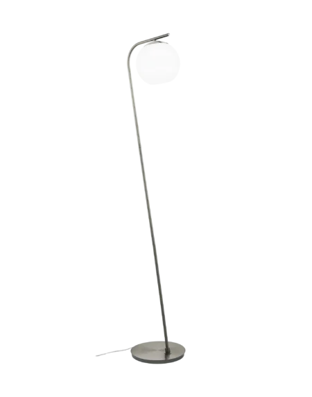The EGLO ROMY (89699) floor light combines elegance and practicality with a sleek satin nickel finish and a white matte-opal glass shade, creating warm and diffused lighting for modern interiors.