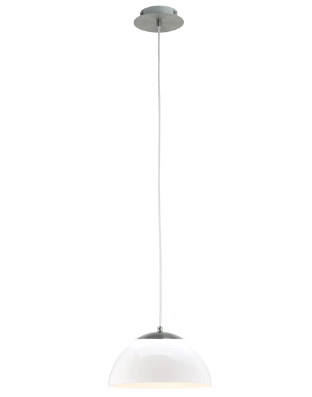 TOPO Pendant Light – Satin Nickel with White Painted Glass Shade, Round Hanging Lamp, E14 Holder, 25 cm Diameter, Modern Indoor Ceiling Lighting for Dining & Living Room