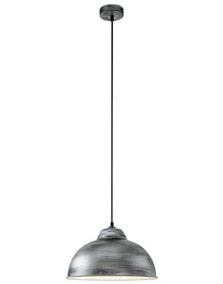 TRURO2 49389 Silver‑Antique Steel Pendant – E27 Socket (Max60W), Ø370mm × 1,100mm Height, IP20 Indoor, 2‑Year Warranty