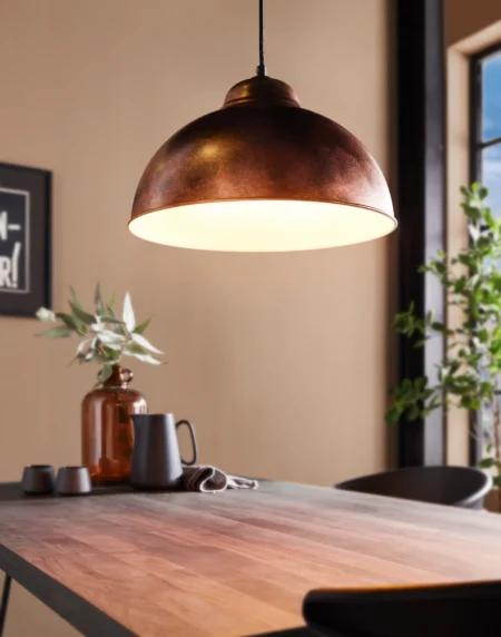 TRURO 2 Pendant Light – Antique Copper-Colored Steel Finish – 43″ Adjustable Height – E27 Socket – Dome Shade – Sloped Ceiling Compatible – ETL/IP20 Rated – 2‑Year Warranty