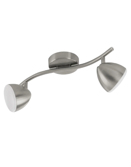 CALVOS1 LED Spot Light, 2×6W Integrated LEDs (~1,000lm, 3,000K Warm White), Satin Nickel Steel with White Plastic Diffuser, 370mm Bar, Flush Ceiling/Wall Mount, ClassI, A+ Energy Rated, 5‑Year Warranty