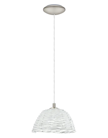 CAMPILO 2 pendant light with satin nickel steel enclosure and white bast shade, featuring a 60W E27 bulb for indoor use.
