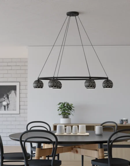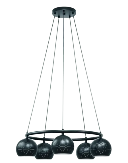 Cantallops 5‑Lamp Dome Pendant | Black Steel & White Interior with Cut‑Out Design | E14 Holders | Adjustable 1.10m Drop | Stylish Dining & Living Room Fixture