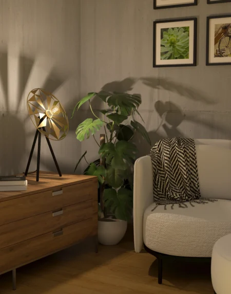 Retro Inspired Design Features a 1960s style geometric gold lampshade paired with a sleek black tripod base, adding a touch of vintage elegance to any room. High Quality Materials Crafted from durable steel with a black and gold finish, ensuring longevity and a premium look. Versatile Placement Perfect for various