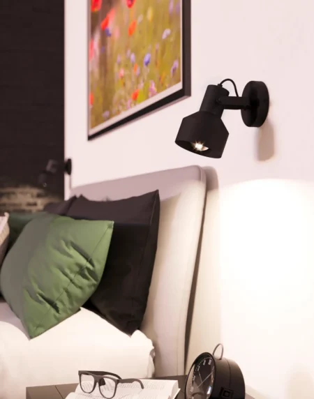 Casibare 99517 Adjustable Ceiling/Wall Spotlight, 1-Light E27, Black Steel Finish, Pivoting Head – Modern Accent Lighting, IP20