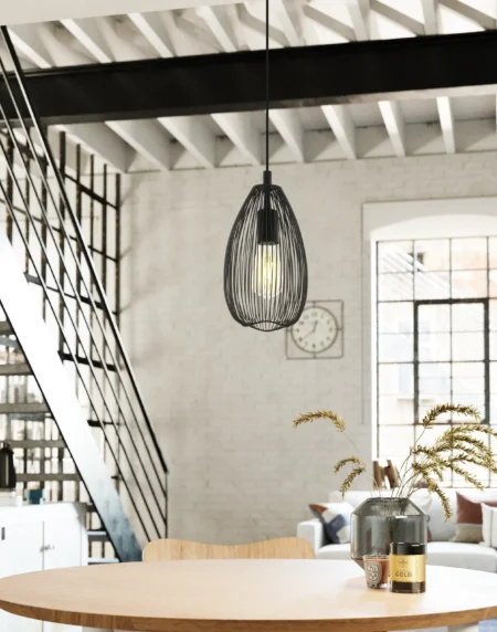 CLEVEDON 49141 Vintage Black Steel Pendant Lamp – E27 Socket (Max60W), Ø240mm × 1100mm Height, IP20 Indoor, 2‑Year Warranty