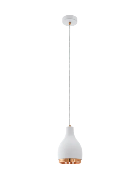 Cocno 1‑Lamp E27 Pendant Lamp – White Steel with Copper Accent, Ø16.5cm × Adjustable 110cm Drop, 2‑Year Warranty