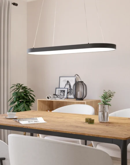 CORDRIALES LED Pendant – 27W Integrated Warm White (3000K, 4000lm), Slim Black-Steel Elliptical Body with White Plastic Diffuser, Dimmable – 5‑Year Warranty