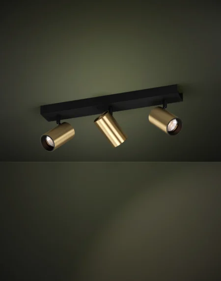 CUMARIBO 2-Light LED Spotlight – Black Steel with Brushed Brass Accents – Adjustable Heads – GU10 Sockets – 2×345 Lumens, 3000K Warm White – Modern Design – Ideal for Living Room, Bedroom, or Hallway – 2-Year Warranty