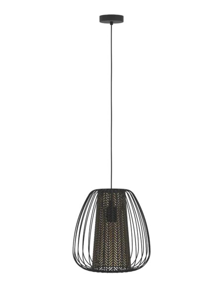 CURACAO 99661 Pendant Light, Black & Gold Fabric-Covered Steel Shade, E27 Socket, 110cm Drop