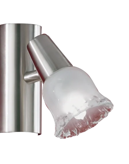 Indoor spot light with satin nickel steel housing and white satin glass shade, equipped with three G9 ESL lamp sockets delivering warm white light.
