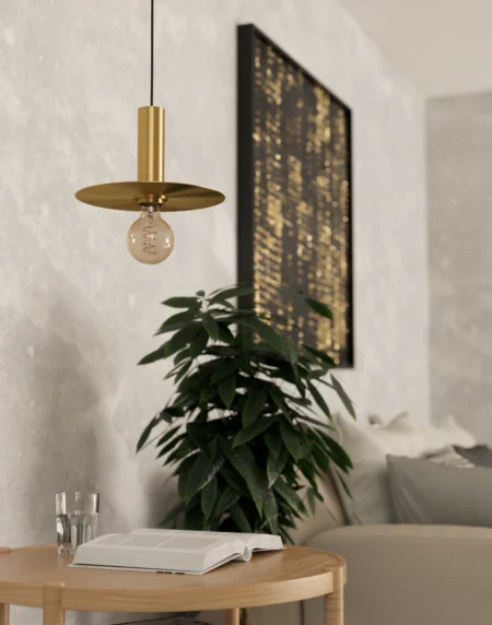 Escandell 900731 Black & Brushed-Brass Mini Pendant – 9.8″ Ø × 43″ Drop, E27 Socket, “New Retro” Style