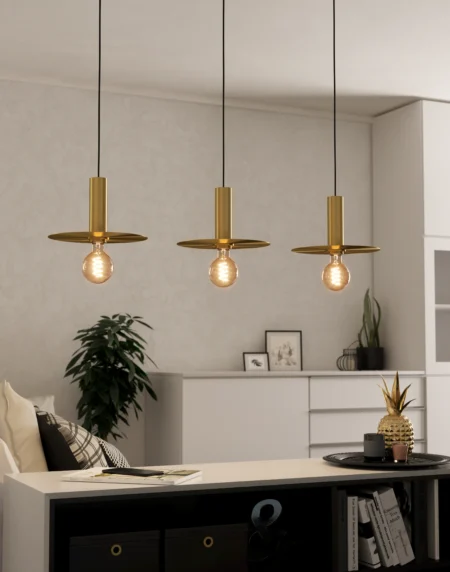Escandell Pendant Light – 3 x E27 Bulbs – Black & Brushed Brass Finish – 1100 mm Height – Industrial Minimalist Design – Indoor Hanging Fixture