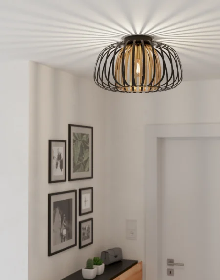 ENCINITOS Ceiling Light – Modern Black & Gold Steel Cage Design, E27 Socket, 40W Max, IP20 Rated – Ideal for Living Rooms, Bedrooms, and Hallways