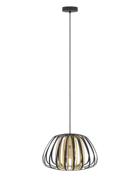 ENCINITOS 99666 Pendant Light, 1‑Light E27, Black & Brushed Brass Steel Cage, Adjustable Ceiling Cable (110cm) – Modern Industrial Accent Fixture