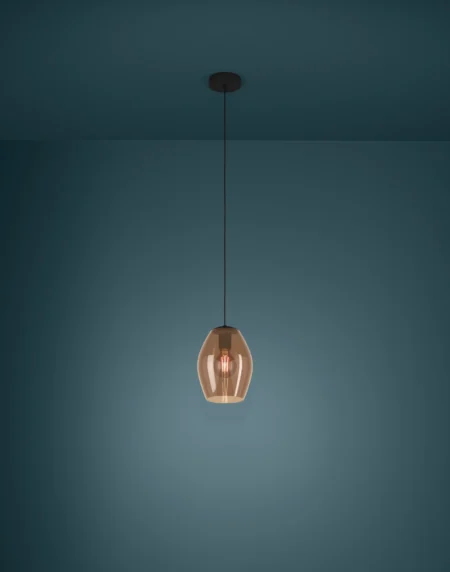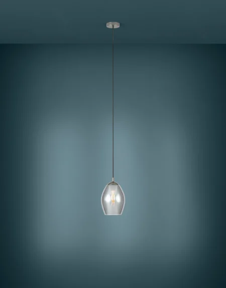 ESTANYS Pendant Light – Nickel‑Nero Steel with Smoked Vaporized Glass Shade, 1×E27 Socket (Max60W), Ø190mm × H1,500mm, Black Textile Cable, IP20, 1‑Year Warranty