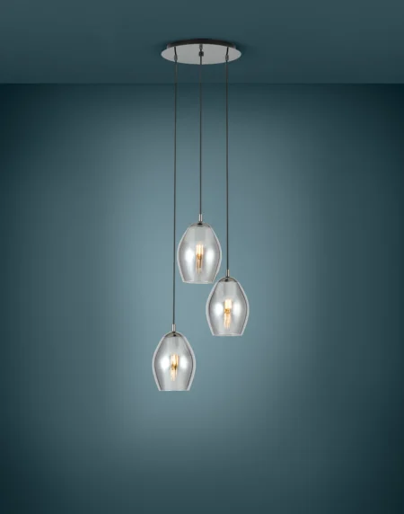 ESTANYS Ceiling Pendant – Nickel‑Nero Steel Frame & Smoked Glass Shades, 3×E27 Sockets (Max3×60W), Ø450mm × H1,500mm, IP20 Indoor, 2‑Year Warranty
