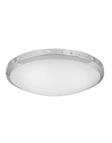 Estelle 89786 Chrome Flush Ceiling Lamp – 51cm Ø with White & Clear Crystal Glass, 1×E27 60W, Decorative Indoor