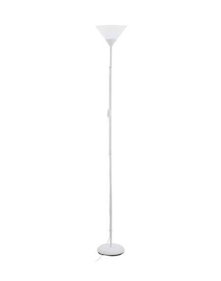 White steel floor lamp with white plastic shade and in‑line switch, E27 up to 60 W (lamp not included), 1775ר245 mm with Ø225 mm base, Class II.