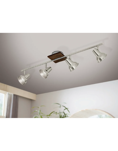 Filipina 95649 Brown Wood & Satin-Nickel 4‑Spot LED Bar Light – 78cm, GU10 LED Included, 960lm Total, Adjustable Heads