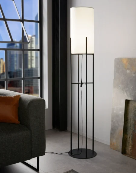 GLASTONBURY Floor Lamp – Black Steel Base with White Fabric Shade – E27 Socket – In-Line Switch – Modern Minimalist Design – Ideal for Living Room, Bedroom, or Office – 2-Year Warranty