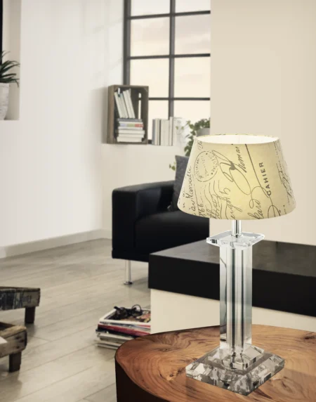 Elegant crystal lamp base design – Chrome plated steel base featuring clear crystal infill, designed to be paired with a shade; inline cord switch included (series GLASBURY, model49856). Precise dimensions – Height 485mm (19. 09″); Diameter 120mm (4
