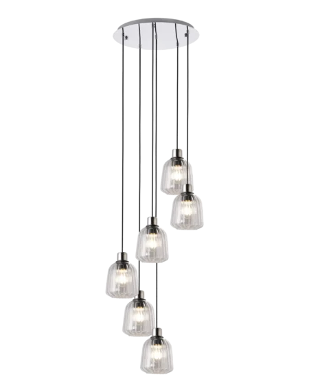 A bold and contemporary pendant light crafted in chrome-finished steel, the EGLO GIOIELLA delivers sleek elegance and striking visual impact to spacious interiors.