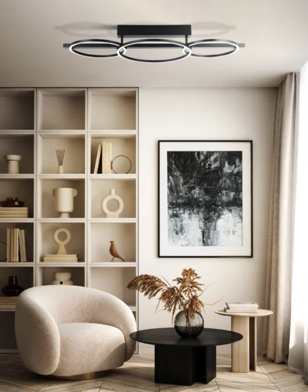 Lanacera LED Ceiling Light – Black & Gold Steel-Aluminium, 5,850lm Warm White, Dimmable, 96.5×40×15.5cm, 5‑Year Warranty