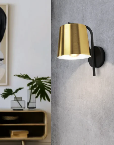 KRELA 780116 Wall Light, Black & Brushed‑Brass Steel, 1‑Light E27, Adjustable Spotlight – Modern Scandinavian‑Industrial Lighting for Hallways, Bedrooms & Living Areas