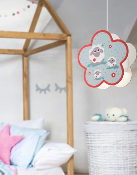 LALELU97706 Kids’ Pendant Light – White Plastic & Wood Shade, 1‑Light E27, Adjustable 110cm Cable, Dimmable‑Ready, 2‑Year Warranty