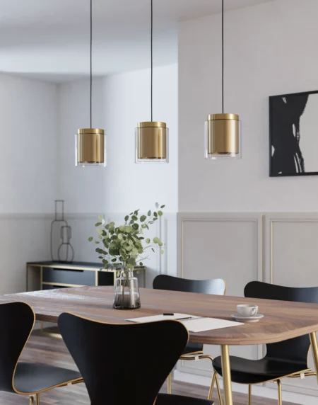 Lagunitas 99654 Pendant Light, 3-Light Black/Brass/Gold Steel with Clear Glass – E27 Socket, 910mm Length, 110cm Drop