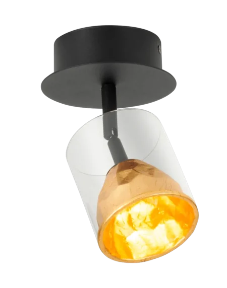 MELITO LED Spotlight – Black & Gold Steel/Aluminium Casing with Clear Glass, Integrated 5.4W LED (≈510lm, 3000K), Ø120mm × H190mm, Dimmable, IP20, 5‑Year Warranty