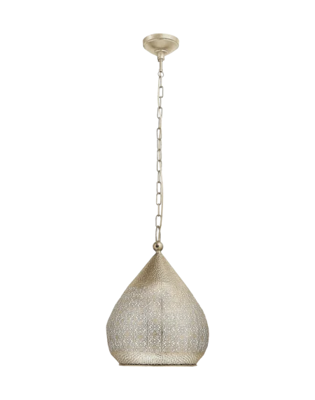 MELILLA Pendant Light – Gold-Hammered Steel with Moroccan Cut-Out Detailing – E27 Socket – 43″ Adjustable Suspension – Ambient Outdoor/Indoor Accent Lighting – 2‑Year Warranty
