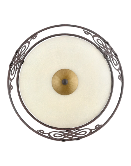 MESTRE Wall/Ceiling Light – Antique-Brown & Gold Steel Frame with Beige Chalked-Glass Shade – 2×E27 Sockets – 15.5″ Ø × 5.2″ H Flush-Mount – Classic-Traditional Ambient Lighting – 2‑Year Warranty
