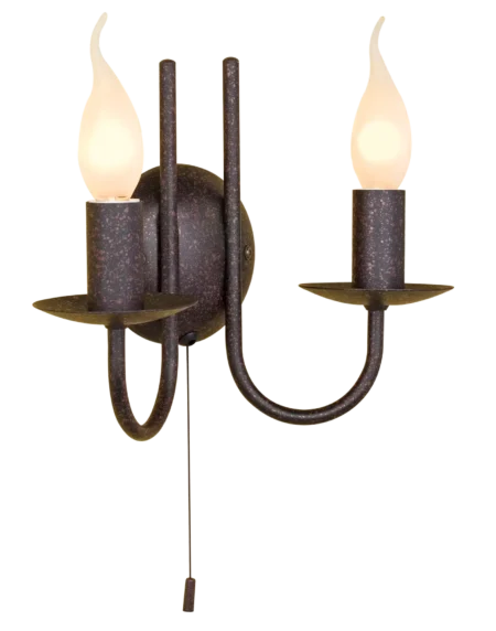 Indoor wall light with brown and gold steel enclosure and cord switch. E14 socket with 40W exclusive AGL bulb.