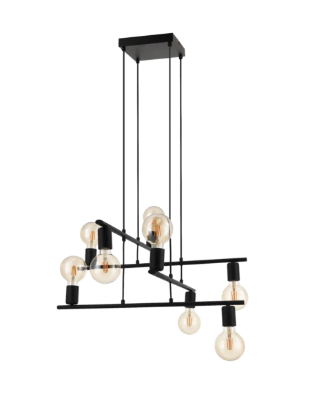 MEZZANA8‑Lamp Pendant – Black Powder-Coated Steel, 650×650mm, 1,100mm Adjustable Drop, 8 × E27 Sockets (max 40W), Hardwired – 2‑Year Warranty